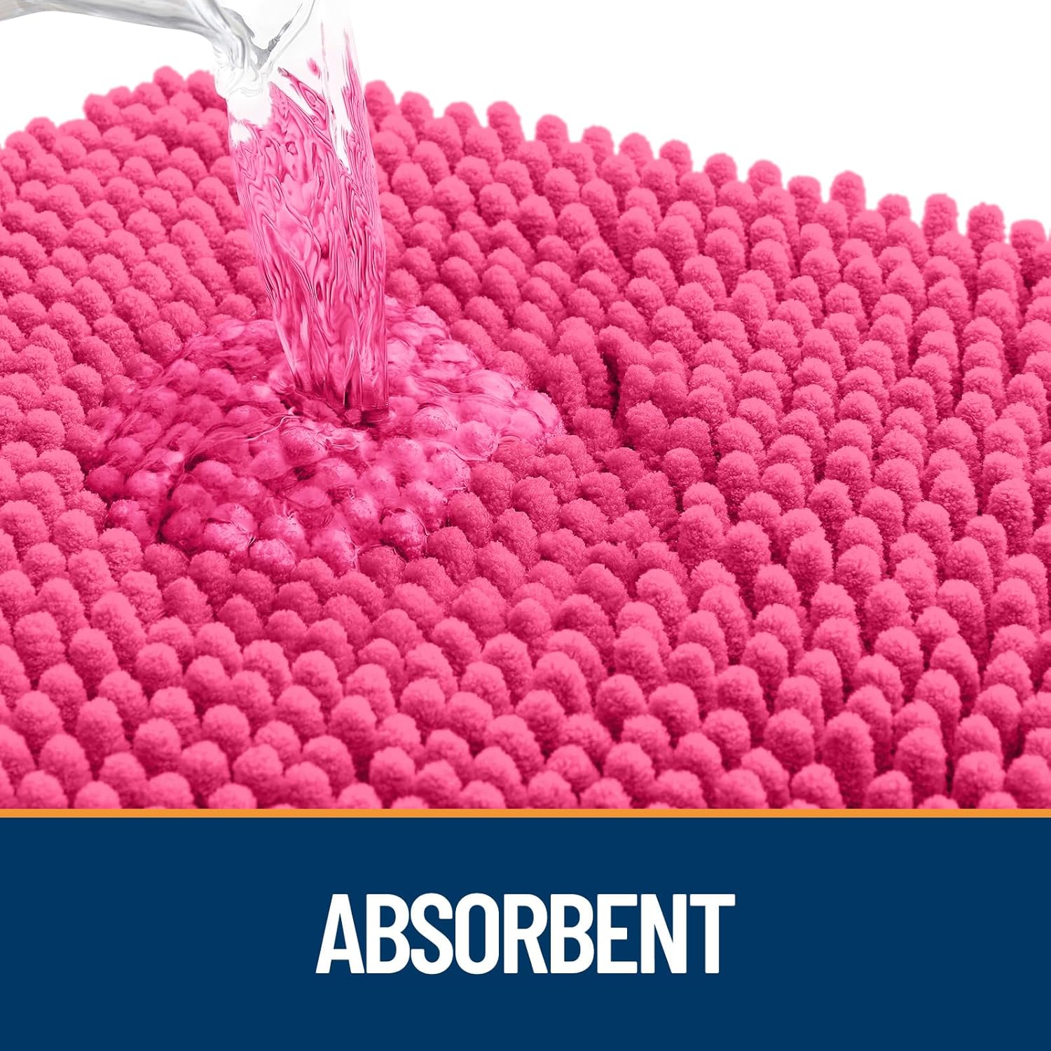 OLANLY Dog Door Mat for Muddy Paws 40x32, Absorbs Moisture and Dirt, Absorbent Non-Slip Washable Doormat, Quick Dry Chenille Mud Mat for Dogs, Entry Indoor Entryway Carpet for Inside Floor, Hot Pink