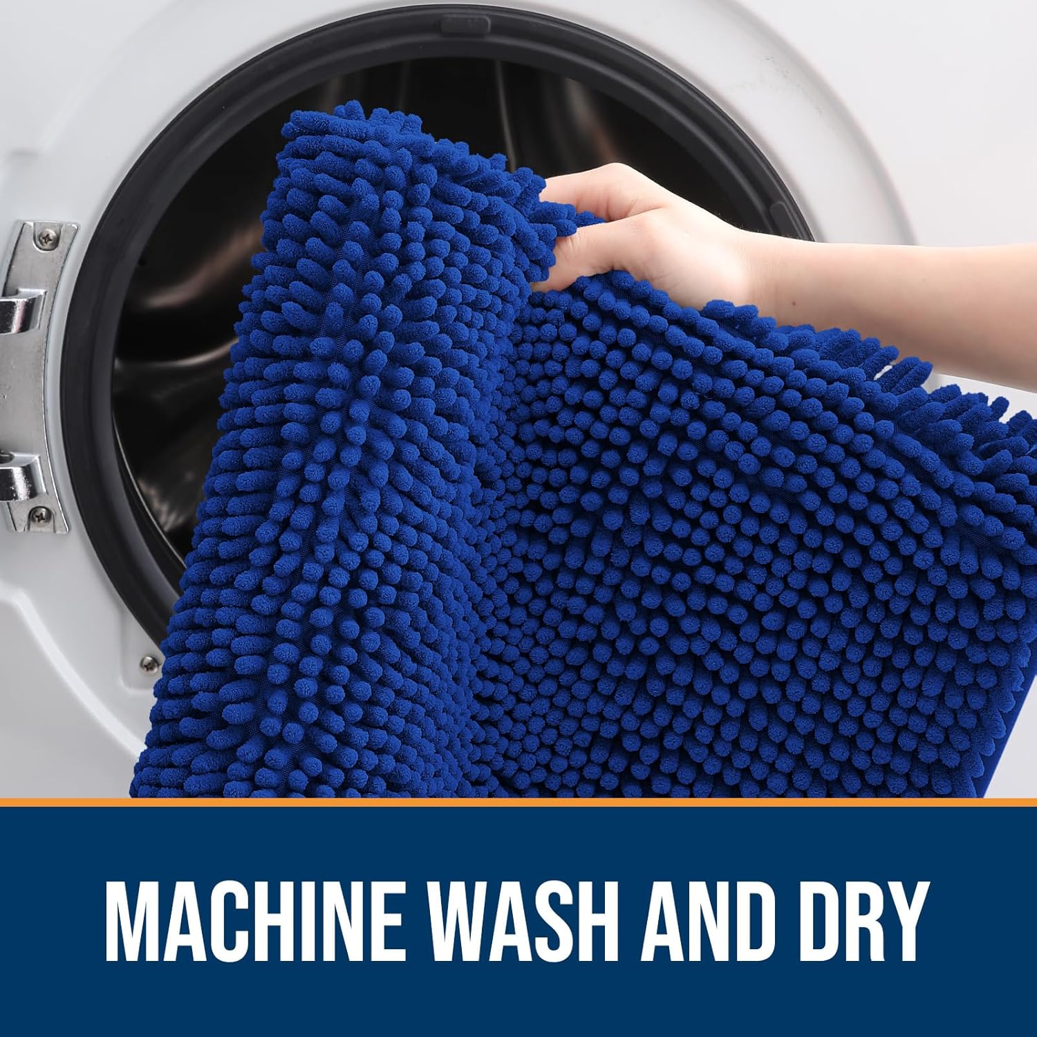 OLANLY Dog Door Mat for Muddy Paws 40x32, Absorbs Moisture and Dirt, Absorbent Non-Slip Washable Doormat, Quick Dry Chenille Mud Mat for Dogs, Entry Indoor Entryway Carpet for Inside Floor, Royal Blue