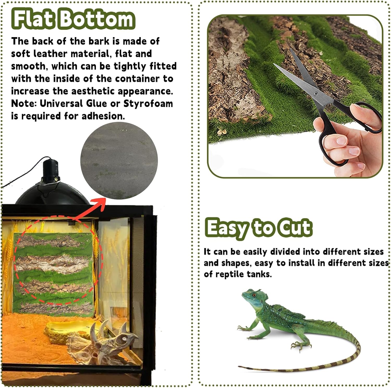 - 【Easy to Cut】: Our cork bark background is flexible and elastic, allowing you to tear it by hand or cut it with scissors to achieve the desired size and shape. Tailor it to your reptile's needs and create a personalized climbing space.