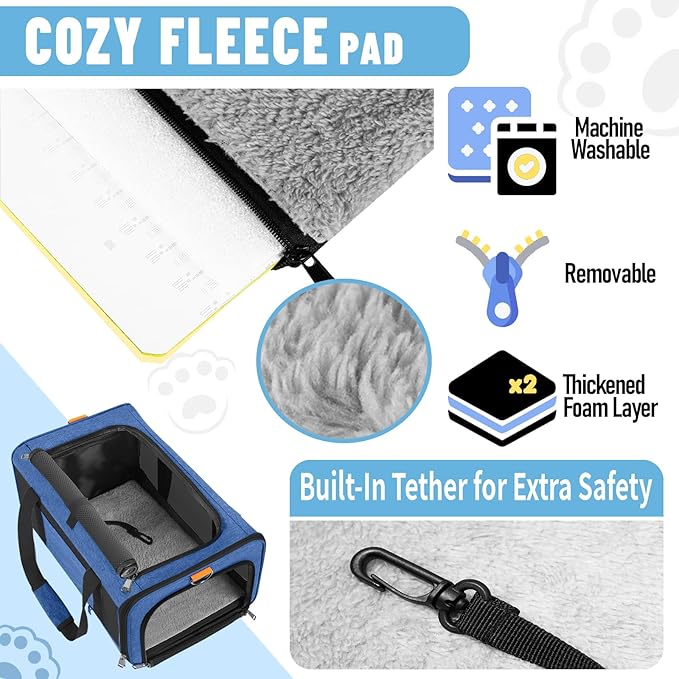 Pet Carrier Large Cats 20 lbs Top Load/Soft Sided Small Dog Travel Carriers/Collapsible Carrier Bag for Medium Cat Puppy/Sturdy Transport Carriers Long Trips/Medium Cats 15 pounds Blue