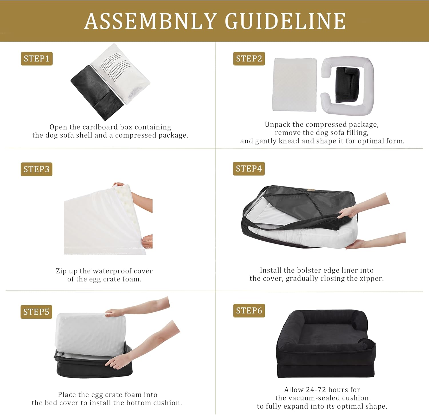 - Suitable Size: Suitable for All Breeds: 48"W x 35"L x 8"D; Sleeping surface: 39.5"W x 31"L (Up to 120lbs); When selecting the product size, please pay attention to the sleeping area. Please wait for 48 hours for full expansion to ensure optimal height and comfort before using.