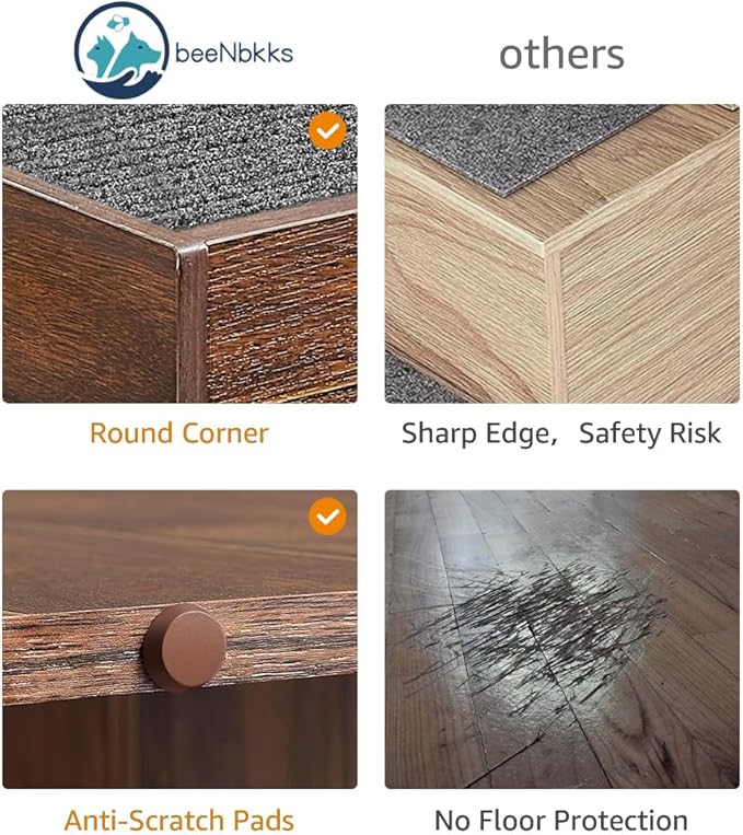 - NO SLIPPING, NO FEAR: Each step is equipped with anti-slip carpeting. At the bottom, anti-scratch pads protect the stairs from moving and floors from scratching. So, your little puppy or elderly dog will feel secure and confident at every step.