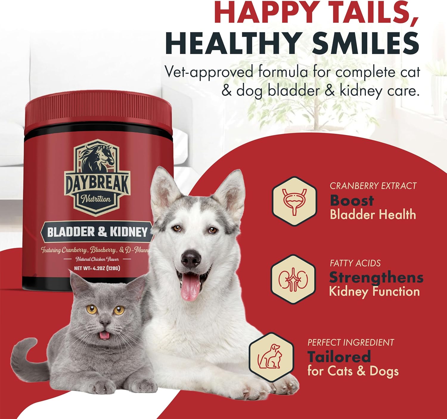 Bladder and Kidney Relief for Dogs & Cats by Daybreak Nutrition | Powder Cranberry Supplement for Dogs and Cat for UTI Treatment & Urinary Support | Dog & Cat Urinary Tract Infection Remedy Supplement