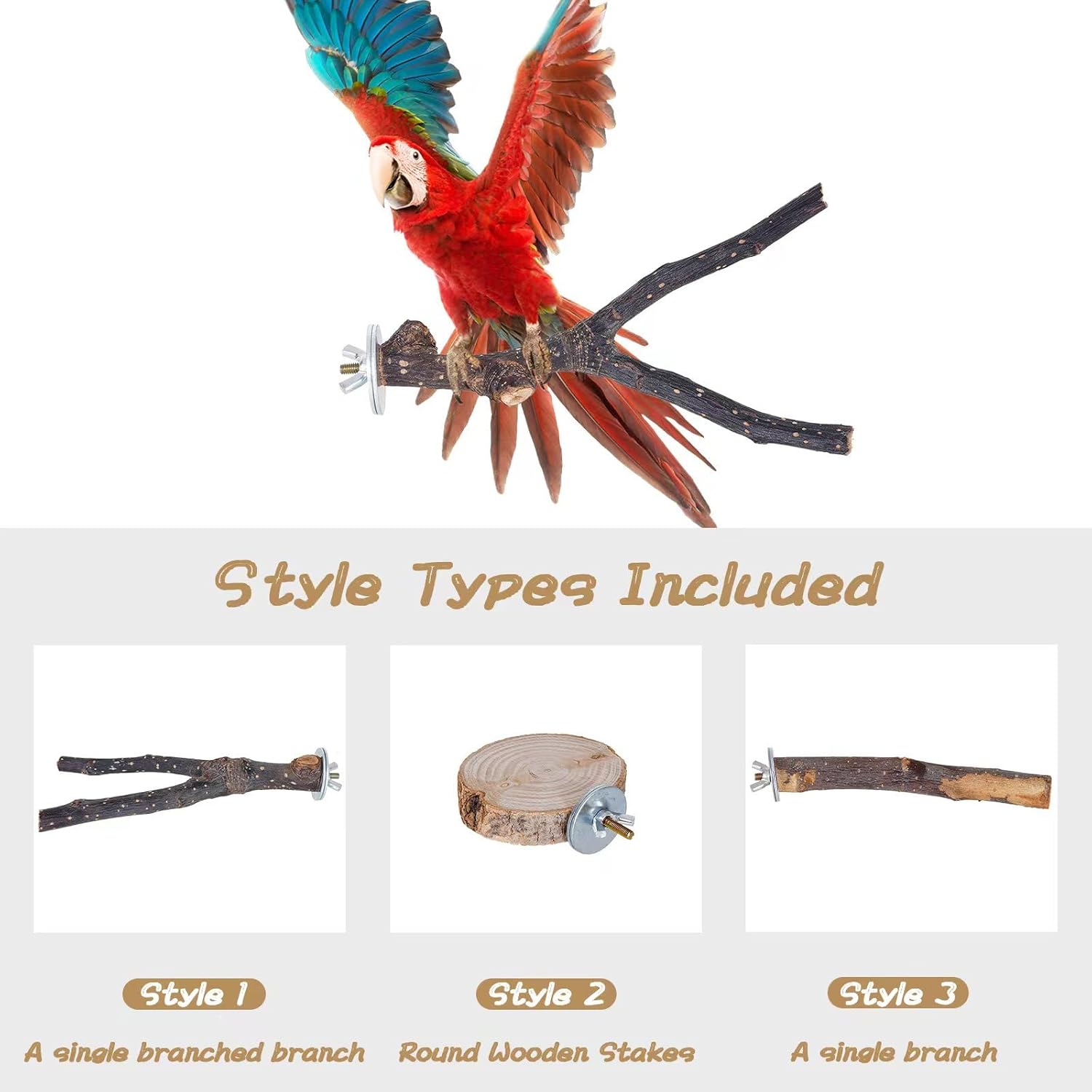 Libiline 8 Pieces Bird Perch Natural Wooden Parrot Perch Stand Fork Toys Hanging Multi-Branch Perches Platform Hammock Swing Toy for Macaws, Small Parakeets, Conures, Budgies, Finches (A-Color, Mix)