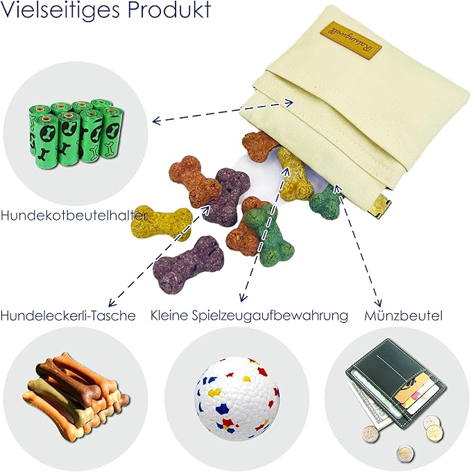 - Versatile product: Our product is equipped with a front storage pouch, perfect for carrying a few poop bags or tissues during your short trips. The stylish training pouch not only holds dog food but also accommodates small toys or serves as a coin purse. It's a versatile walking bag that meets various needs.