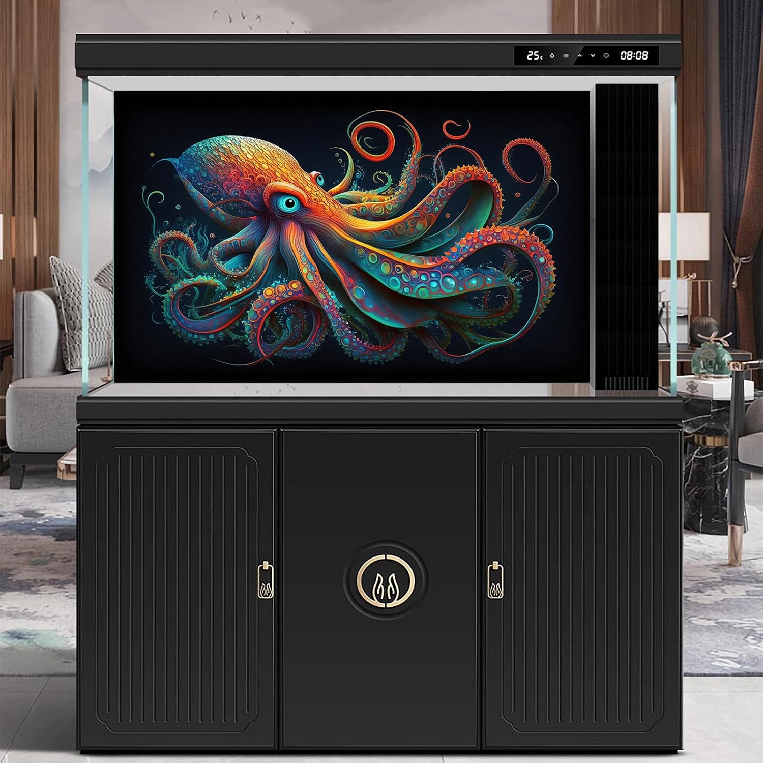 Octopus Aquarium Background Abstract Colorful Octopus Terrarium Background Glowing Octopus on Black Background Fish Tank Backdrop Poster Wallpaper Decorations Vinyl 36x20in