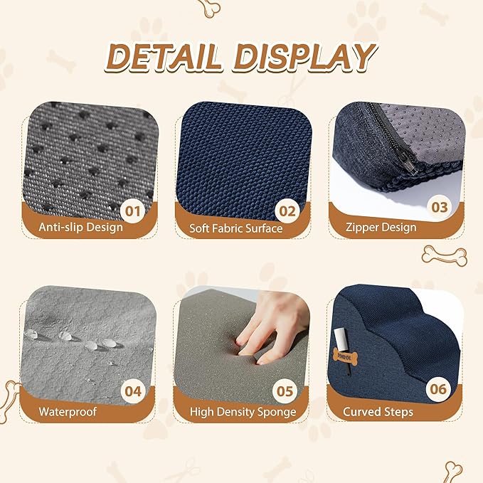 - 33D REBOUND HIGH-DENSITY FOAM: Our 33D foam delivers 63% faster rebound vs standard foam with enhanced weight capacity. Perfect for puppies, senior dogs, and pets recovering from surgery to access beds/couches safely. Dual-purpose as cat stairs for multi-pet households