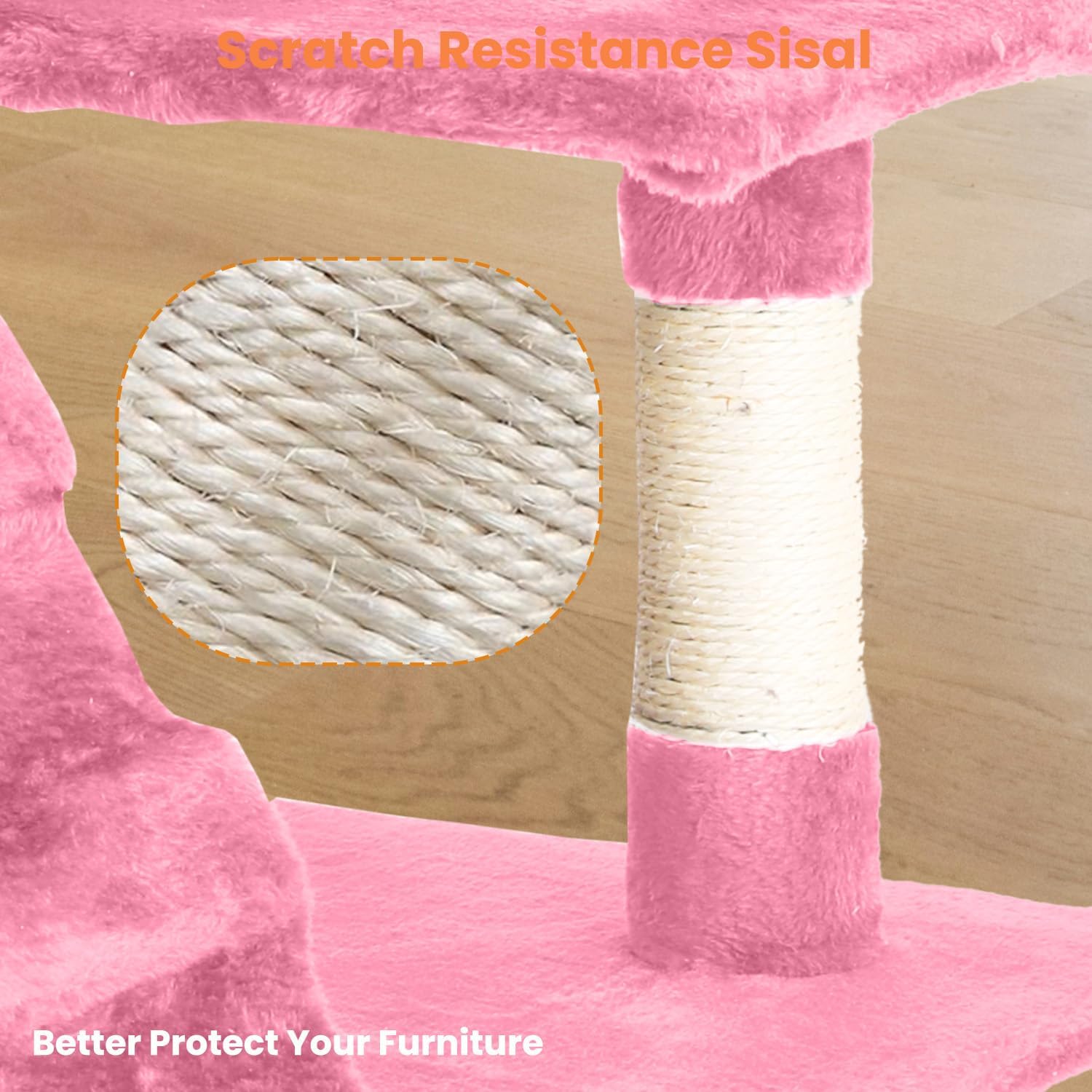 54.7 inches Cat Tower for Indoor Cats, Multi-Level Cat Condos with Scratching Posts, Hanging Toys, Pink
