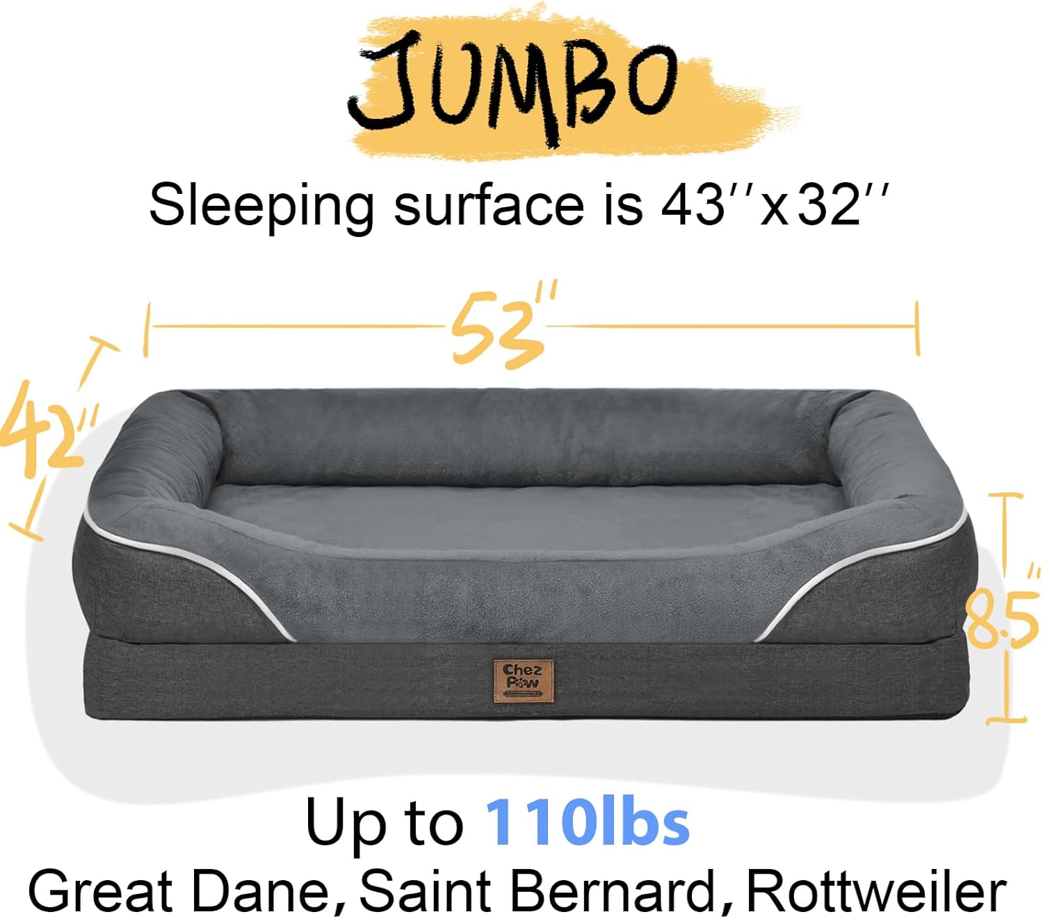 - Waterproof and Easy to Clean: This large sized dog bed is coated with waterproof inner lining that effectively protect the mattress from any unexpected spills; The cover features dual zippers for easy removal, toss the cover into the washing machine for a thorough clean, making cleaning a breeze