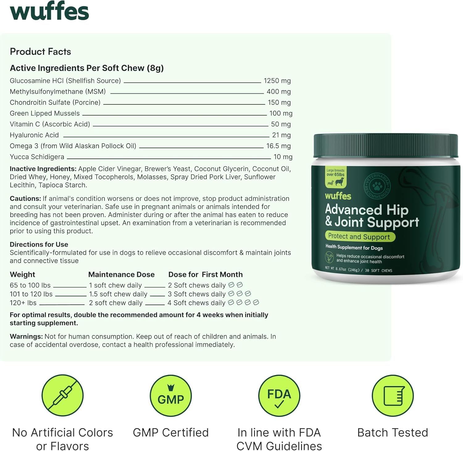 - Scientifically-Backed Ingredients: Expertly formulated by our in-house pet scientists, Wuffes Hip & Joint Support is made with ingredients known to help maintain healthy cartilage, promote joint integrity, and support long-term joint health.