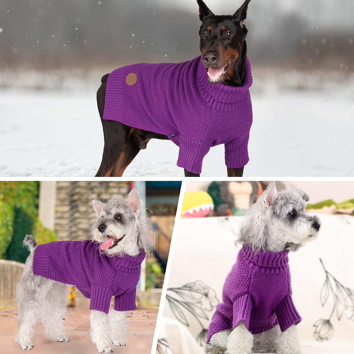 cyeollo Dog Sweater Pullover Turtleneck for Dogs, Classic Knitwear Fall Winter Cold Weather Doggie Clothes Warm Pet Apparel Small Dog Sweaters, Purple M