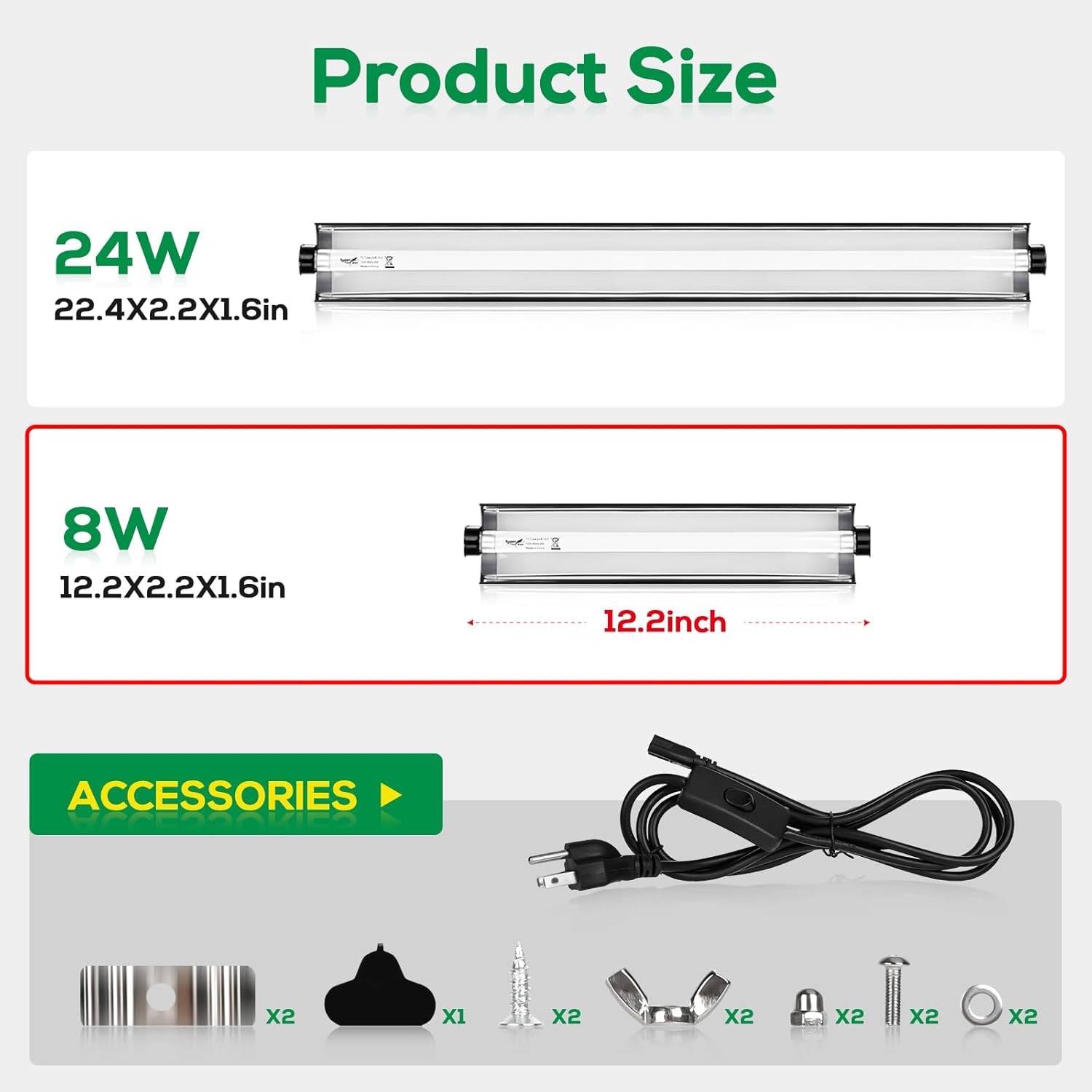- Easy to Install and Safety - Plastic protective covers are attached to both ends of the reptile light fixture, adding flame retardant materials to ensure safety. The detachable power cable is easy to carry and install, and various mounting accessories allow the T5 uvb reptile light fixture to easily fit on a wire mesh or terrarium, and It can also be mounted on wooden tank with screws. We are equipped with a detailed instruction manual for your reference.