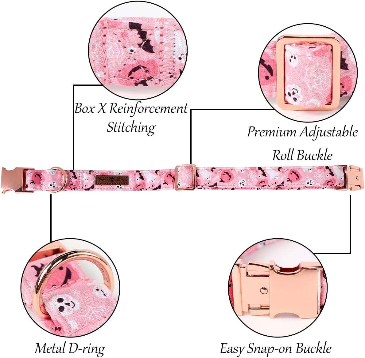 Lionet Paws Halloween Dog Collar, Cute Fall Pink Dog Collar for Medium Dogs, Adjustable Cotton Pumpkin Ghost Pet Collars for Small Medium Dogs