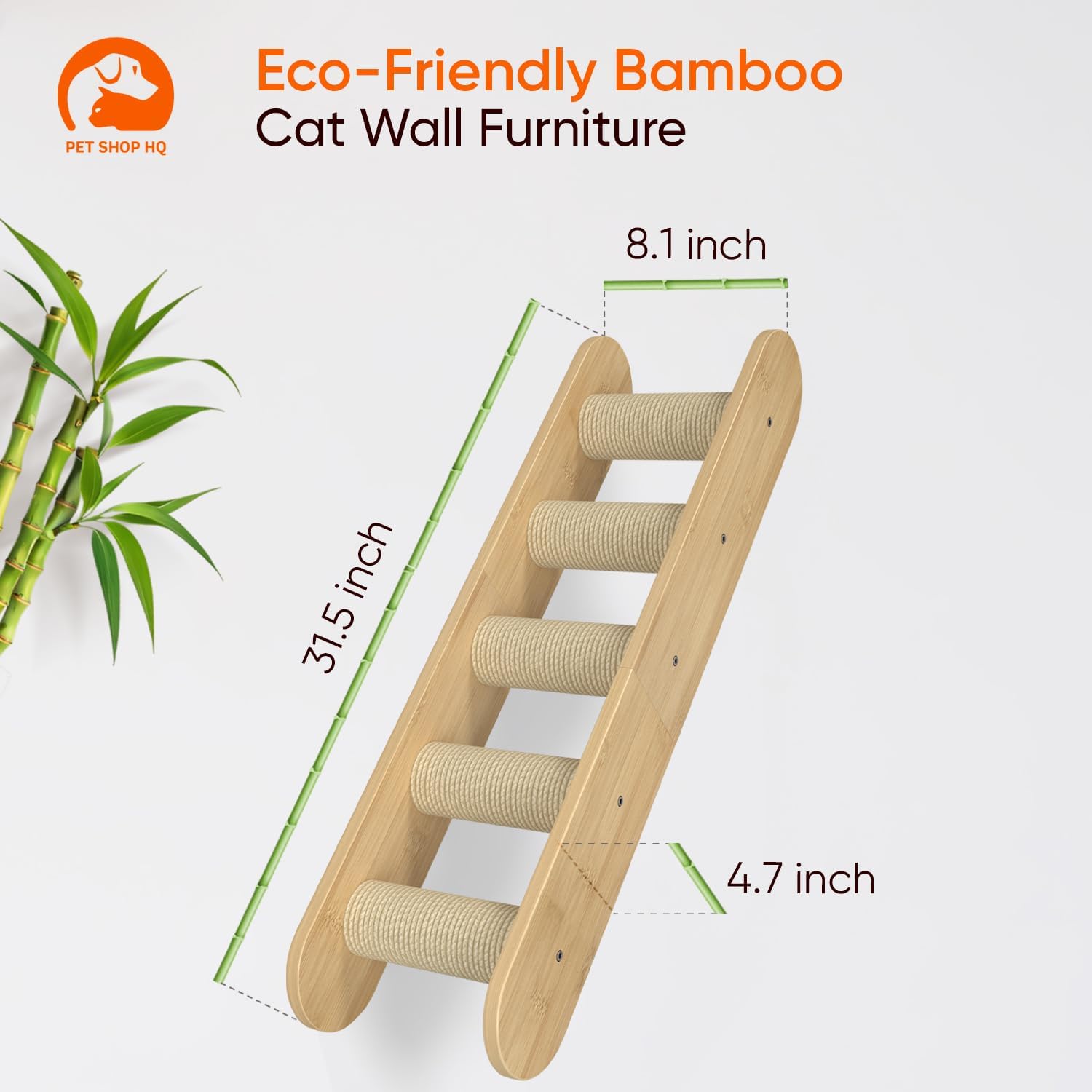 - 100% Bamboo Wood: Our cat shelves for wall are made from 100% bamboo, with no varnish or formaldehyde, ensuring a safe and eco-friendly option for your cat’s well-being. The wood is odorless, stylish, and durable enough to last long