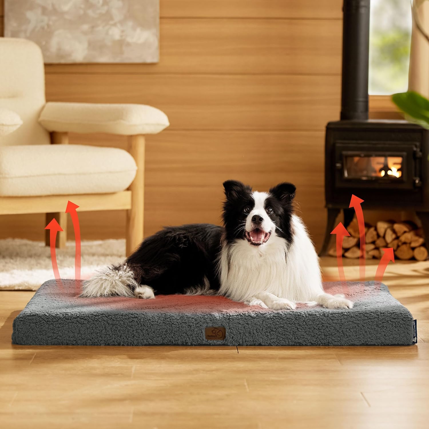 • Self-Warming & Cozy Mat: Self-warming dog bed generates heat through internally woven heating wires, achieving a high insulation rate that is twice the standard. It doesn't have the noise of aluminum foil nor the safety hazards of electric mat, ensuring that pets stay warm throughout the winter.