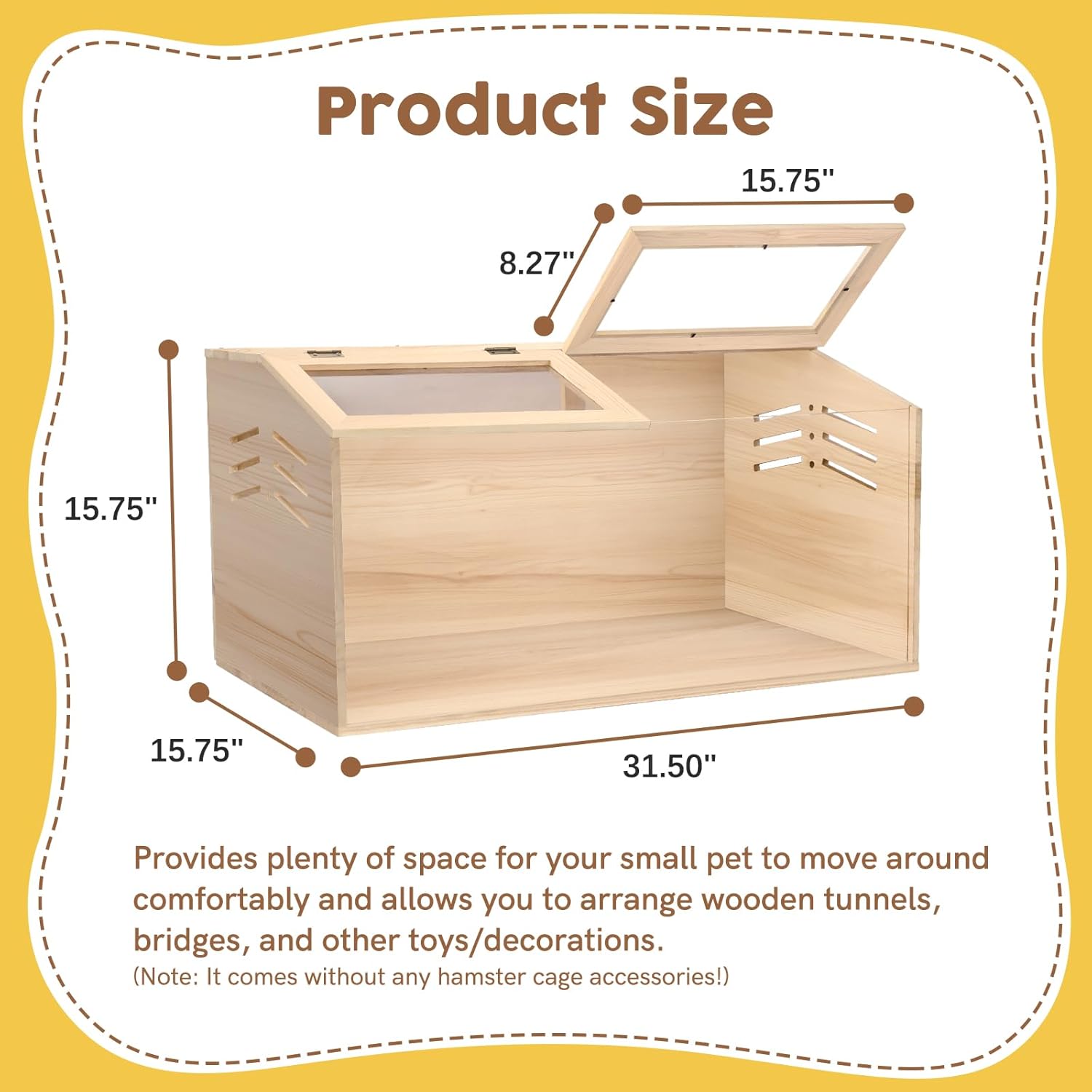 Snowtaros Wooden Hamster Cage, Large Hamster Cages and Habitats Chewproof, with 2 Openable Acrylic Top, Small Animal Cage for Mouse Gerbil Quail Dwarf Syrian Hamsters (31.5" L*15.7" W*15.7" H)