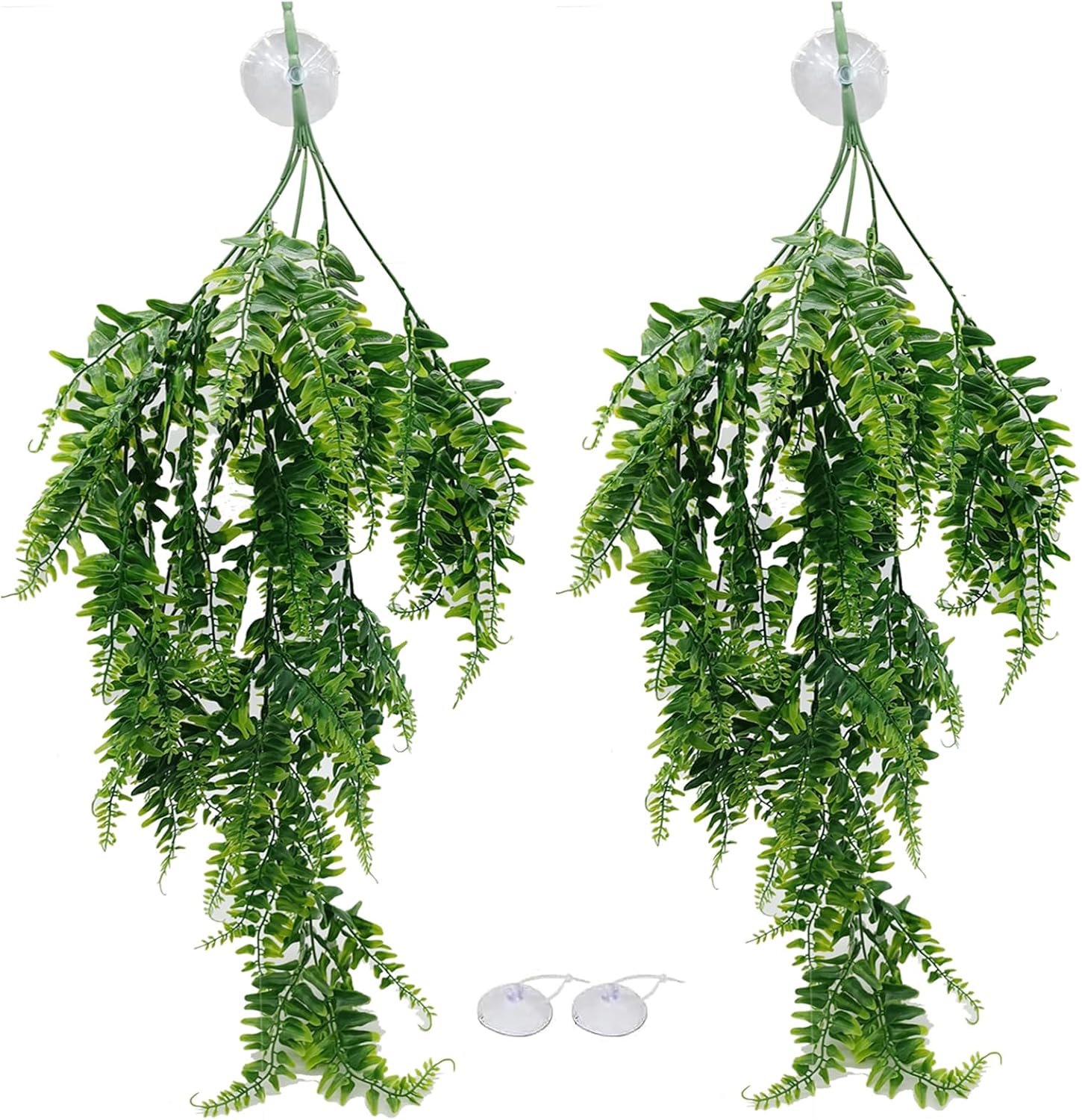 - 【Include】2 x Large Plastic Hanging Leaves vines, 2 x large/strong suction cups of 2 inch / 5cm in Dia. Perfect for reptile habitat decorations, terrarium hanging, snake terrarium decorations.