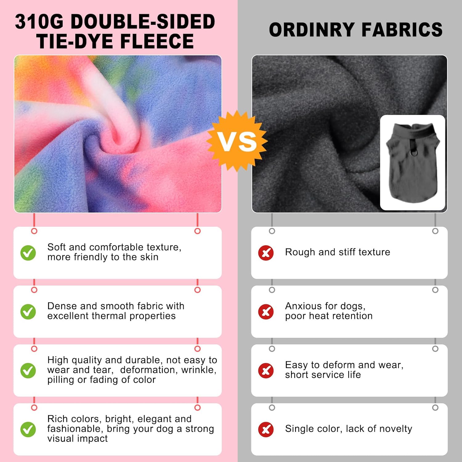 - WARM & BREATHABLE: Our dog sweatshirt is crafted from 100% polyester fiber. The 310G heavyweight breathable skin-friendly fleece fabric blocks moisture from rain, snow, and ice, provides optimal stretch and comfort, and keeps your dog warm without being stuffy, making them feel cuddled and secure.