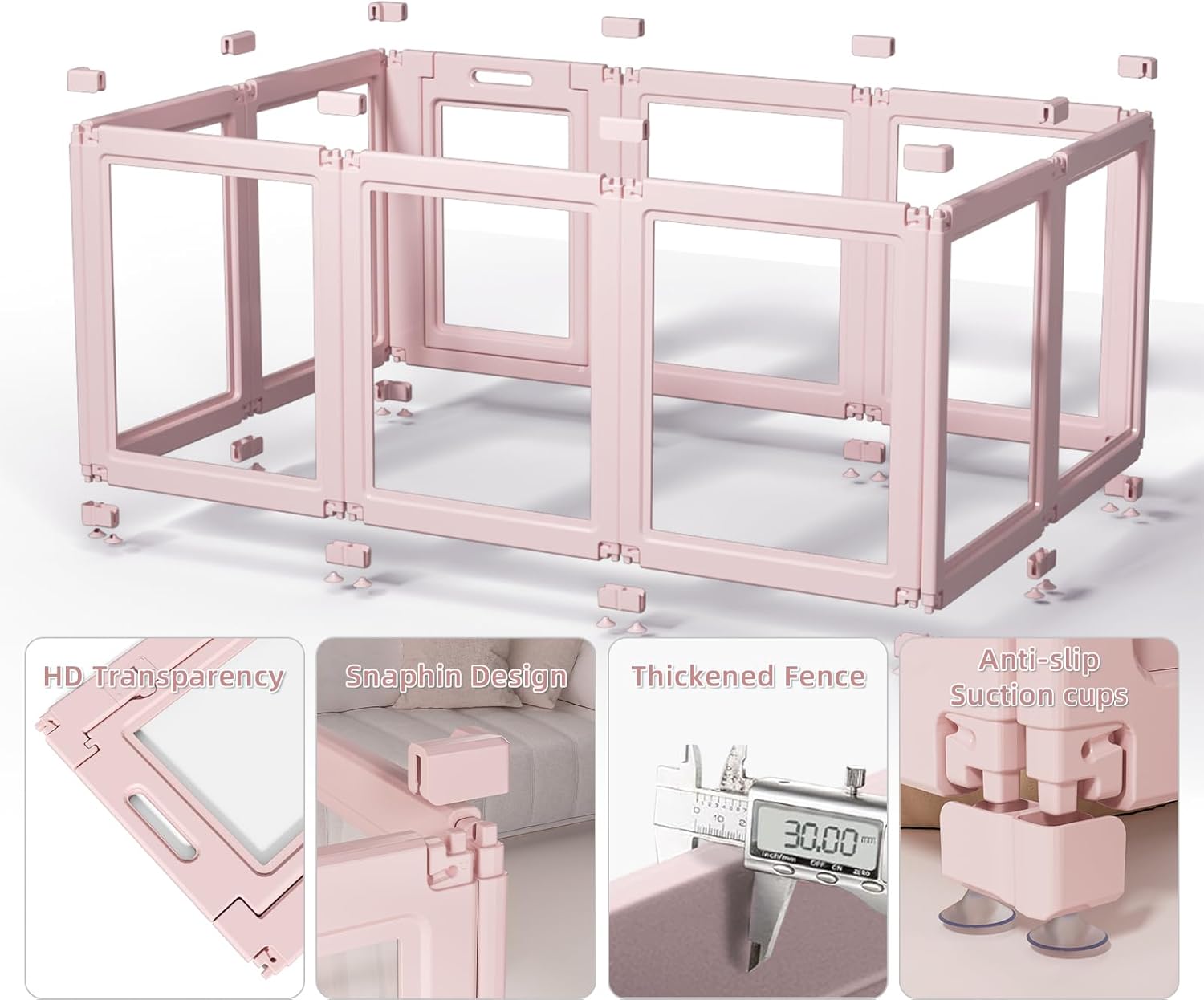 DIY Clear Acrylic Dog Playpen House,Quick Easy Assembly and Disassembly,Strong Floor Suction,Indoor and Outdoor Use,Easy Cleansing Puppy Fence (Skin Pink, 30.3" H, 10PCS)