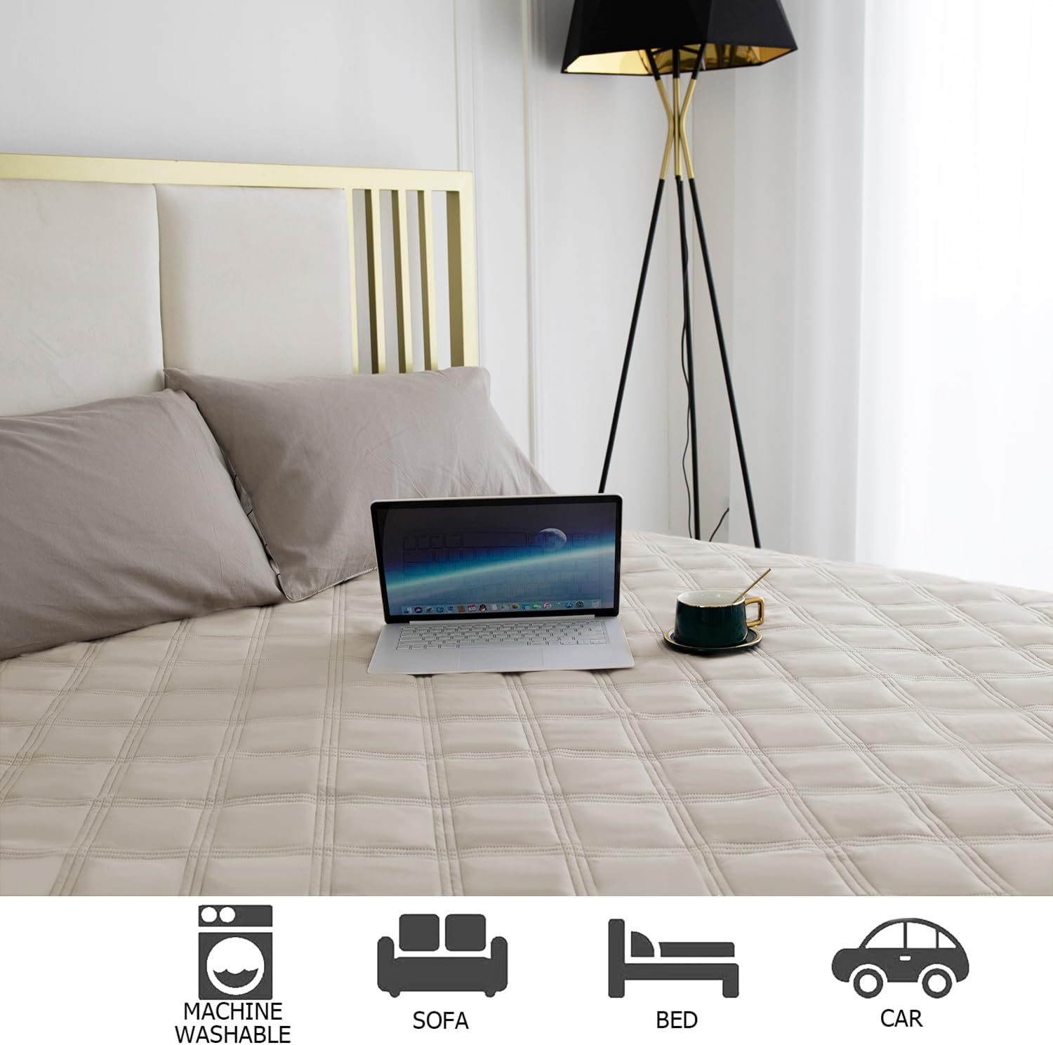 - 5-LAYERS MATERIAL: This premium quilted bed cover is constructed with multi layers fabric. Features a sanitized protective finish and odor prevent to keep your furniture looking and smelling fragrant. Chemicals free and ECO friendly, high safety to kids and pets