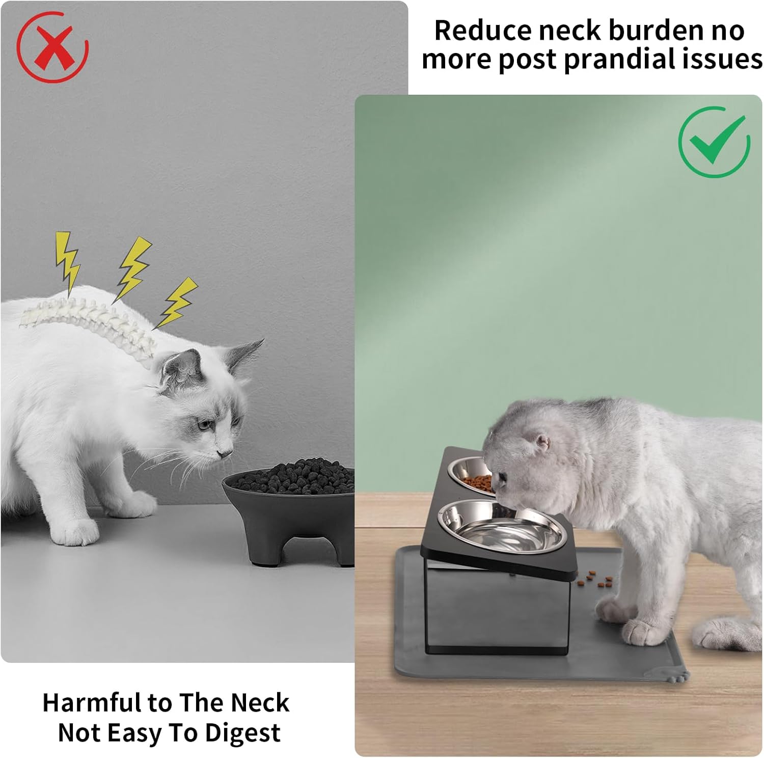 - 【15°TILTED Design】The 15°elevated cat bowls have been shown to be effective in relieving pressure on the cat's neck and stomach during eating, preventing vomiting and being suitable for digestion.It is more in line with the diet habits of kittens and puppies