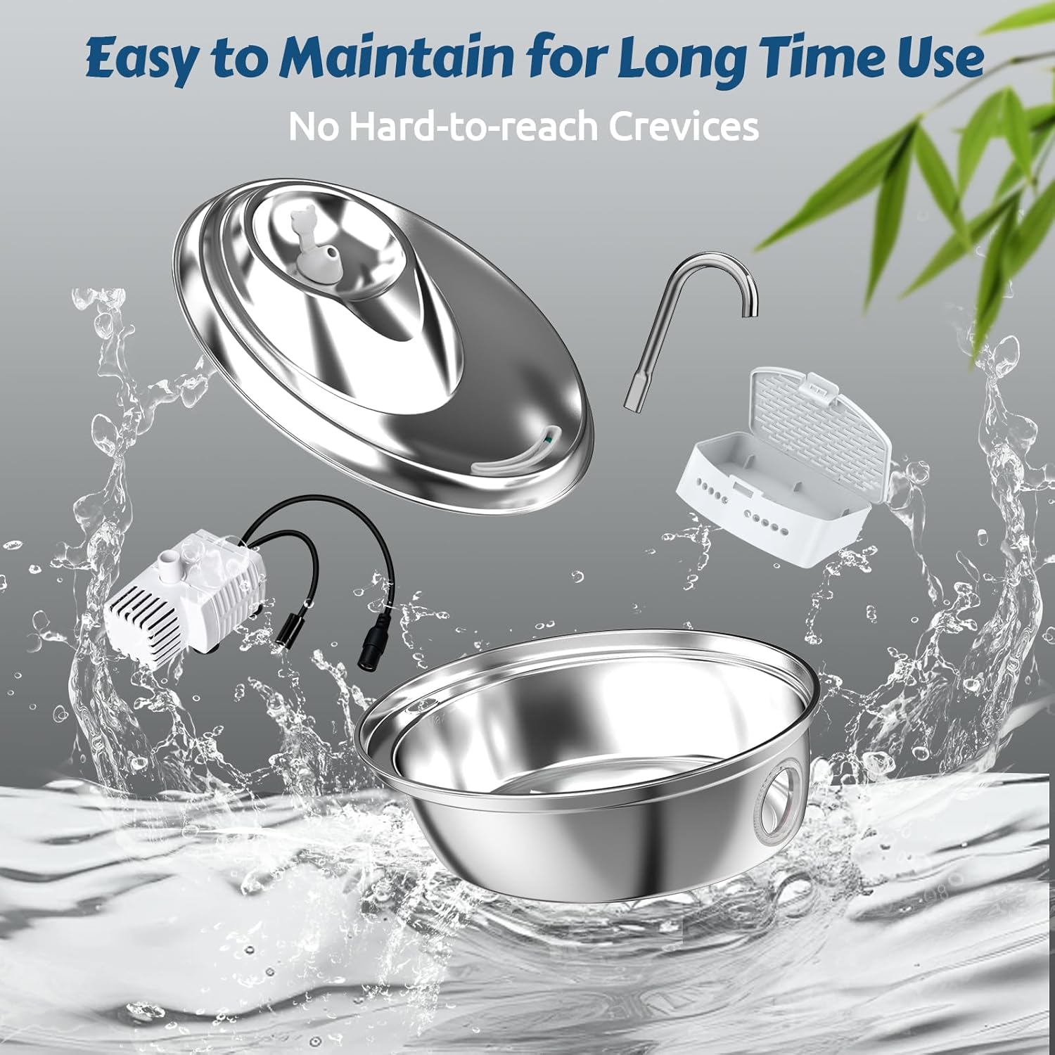 ORSDA Cat Water Fountain Stainless Steel, Cat Fountains for Drinking, 67oz/2L Automatic Pet Fountain Water Dispenser with Water Level Window for Cats and Small Dogs- 4Pcs Filters (D36-F)