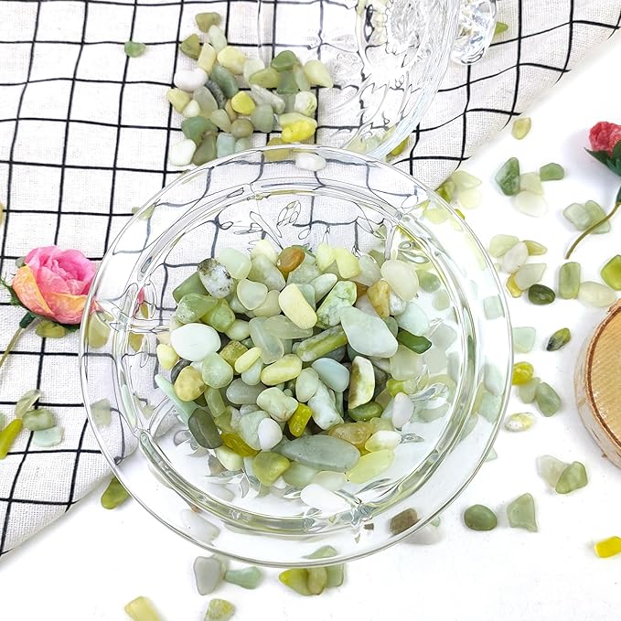 - 【Note】Jade pebbles are natural rocks polished and waxed and processed, we do not recommend placing it in a fish tank, if you need to put it in a fish tank, please wash the surface with hot soapy water for 5 minutes first, then wash it with clean water