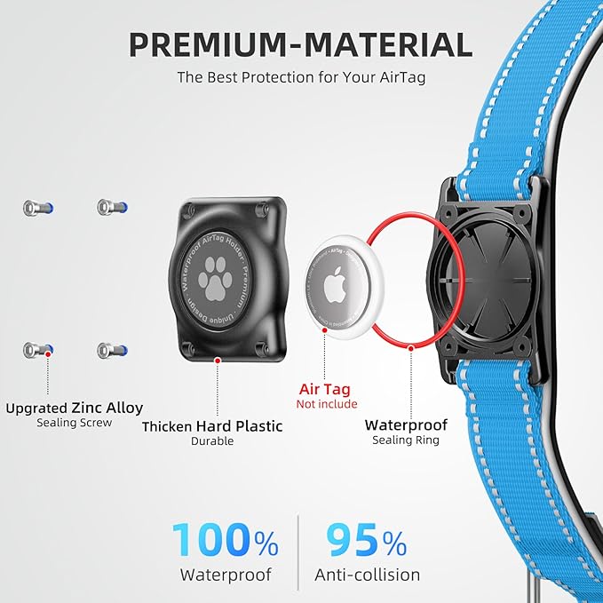 - Secure and Reliable: Our screw-secured dog collar AirTag holder keeps your tracker safe, giving you confidence that you can find your dog in a pinch. Built to withstand rough play, this collar is perfect for energetic dogs.