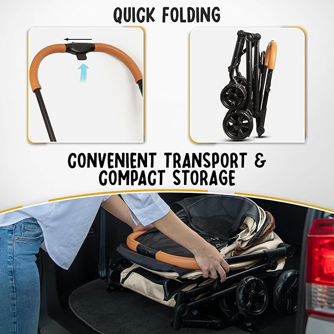 - ✔ Easy-Breezy Strolling - Navigate through your neighborhood with the convenience of hassle-free usability. Our double cat stroller is a breeze to assemble, stroll, and fold. More time enjoying, less time fumbling!