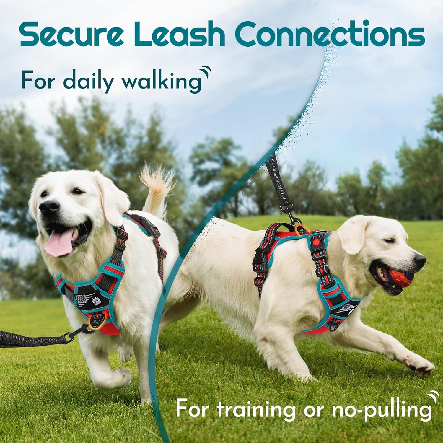 Eagloo Dog Harness Medium Sized, Easy Wearing with 3 Buckles, Adjustable No Pull Pet Harness with 2 Rings for Walking, No Chock Reflective Soft Padded Vest with Control Handle, Red & Teal, M