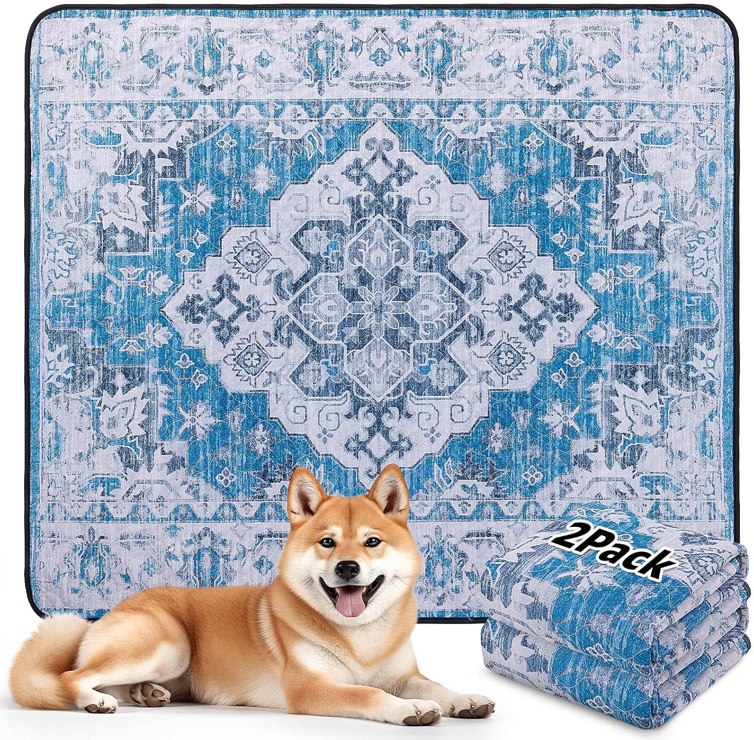 LOOBANI Washable Pee Pads for Dogs, 2 Pack Super Absorbent Reusable Puppy Pads Leakproof Dog Traning Pads, Waterproof Non-Slip Whelping Pad for Floor, Playpen, Crate, Couch-31 x36 (Blue)