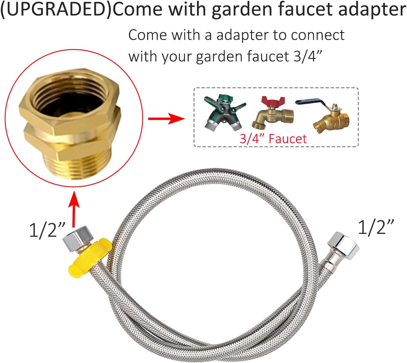 - Back up water float valves, a 3/4” garden faucet adapter and water pipe is included.