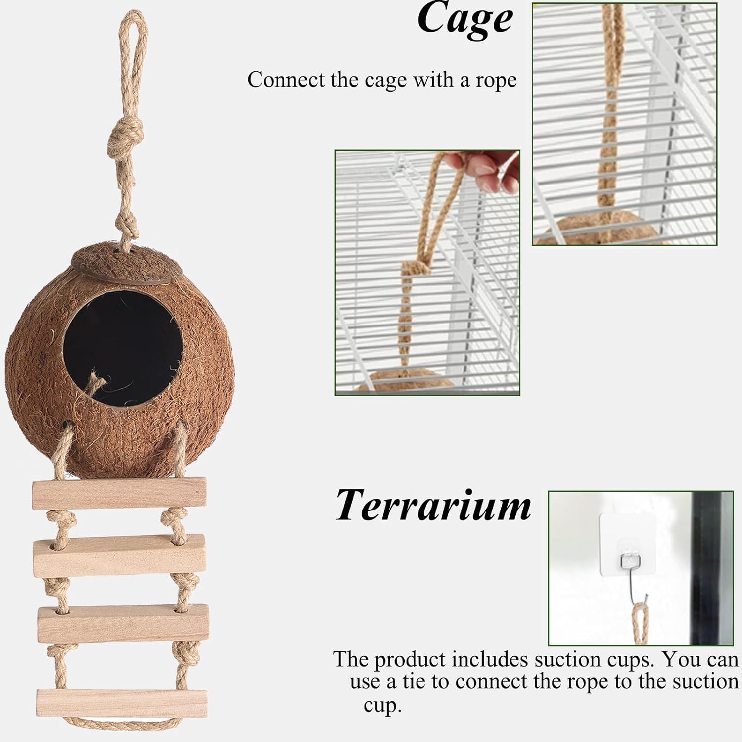 - 【Climb Ladder】The coconut shell nest provide a relax and recover place for lizards, they can isolates loud sounds, activity and bright light. Reptiles climb and play the ladder can release excessive or anxious energy to relieve stress.