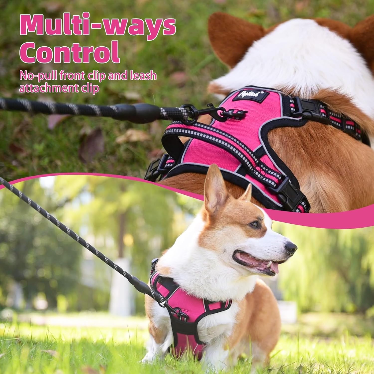 PUPTECK No Pull Dog Harness Medium Sized, Adjustable Reflective Dog Harness with Handle Easy Control, Comfortable Soft Padded Pet Vest Harness for Medium Dogs, Fuschia M