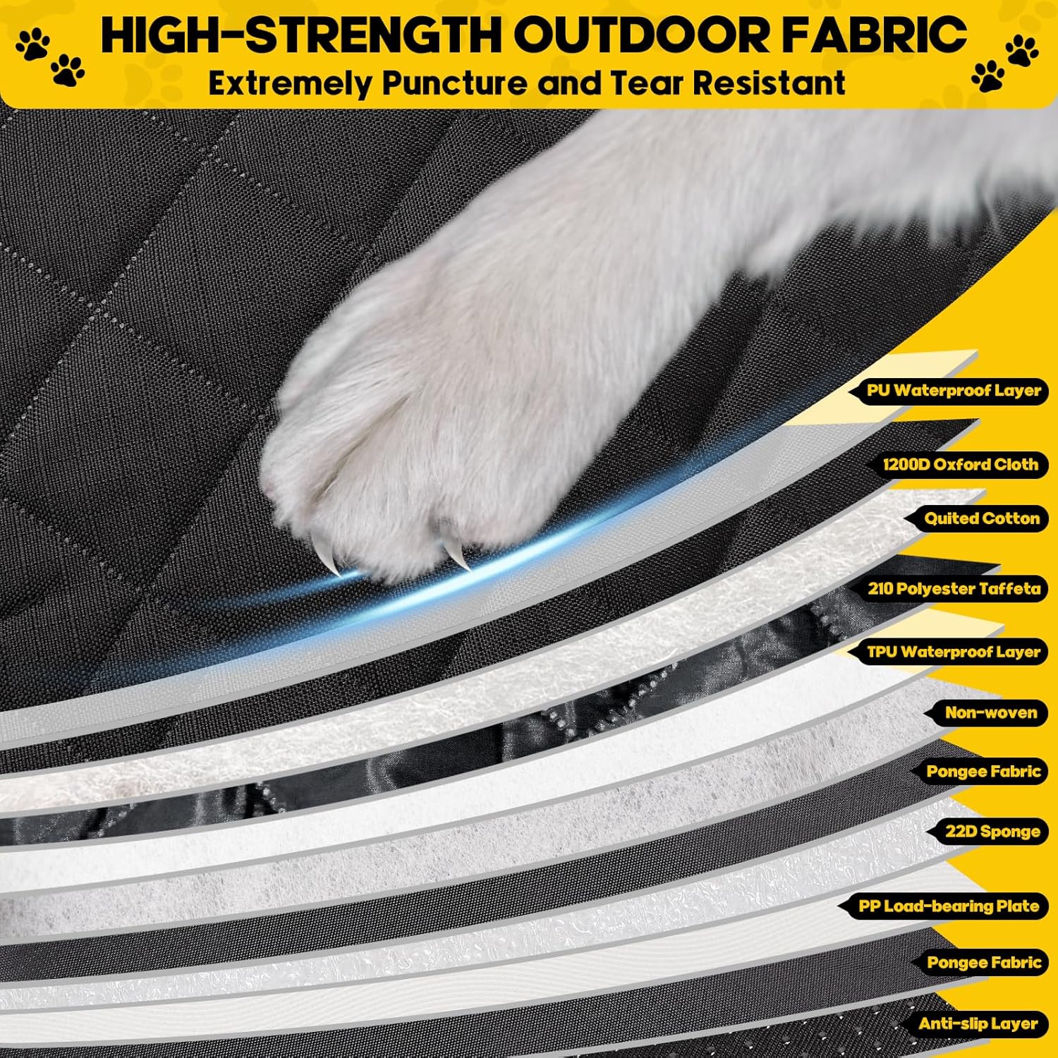 - 【Upgraded High-Strength 1200D Rip-Stop Fabric】The Truck backseat dog cover is crafted from military-grade 1200D Rip-Stop fabric, engineered to resist rips, tears, and punctures. It boasts twice the durability of standard materials. The tight weave withstands heavy digging, scratching, and rough play, offering a longer lifespan than traditional fabrics. By investing in this high-quality backseat cover for dogs in car, you avoid repeatedly buying cheaper alternatives, reducing energy consumption, fuel usage, and landfill waste. The fabric is also hair-resistant and easy to clean, conserving water and detergent. This investment provides better long-term value for both you and your dog