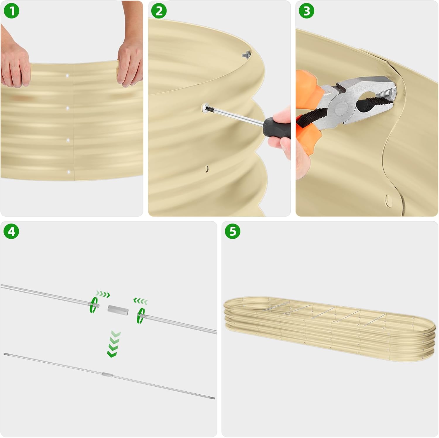 Land Guard 8×2×1ft Galvanized Raised Garden Bed Kit, 108 Gallon Capacity Raised Garden Boxes Outdoor, Oval Metal Raised Garden Beds for Vegetables, Cream Yellow(with 10 Connecting rods)