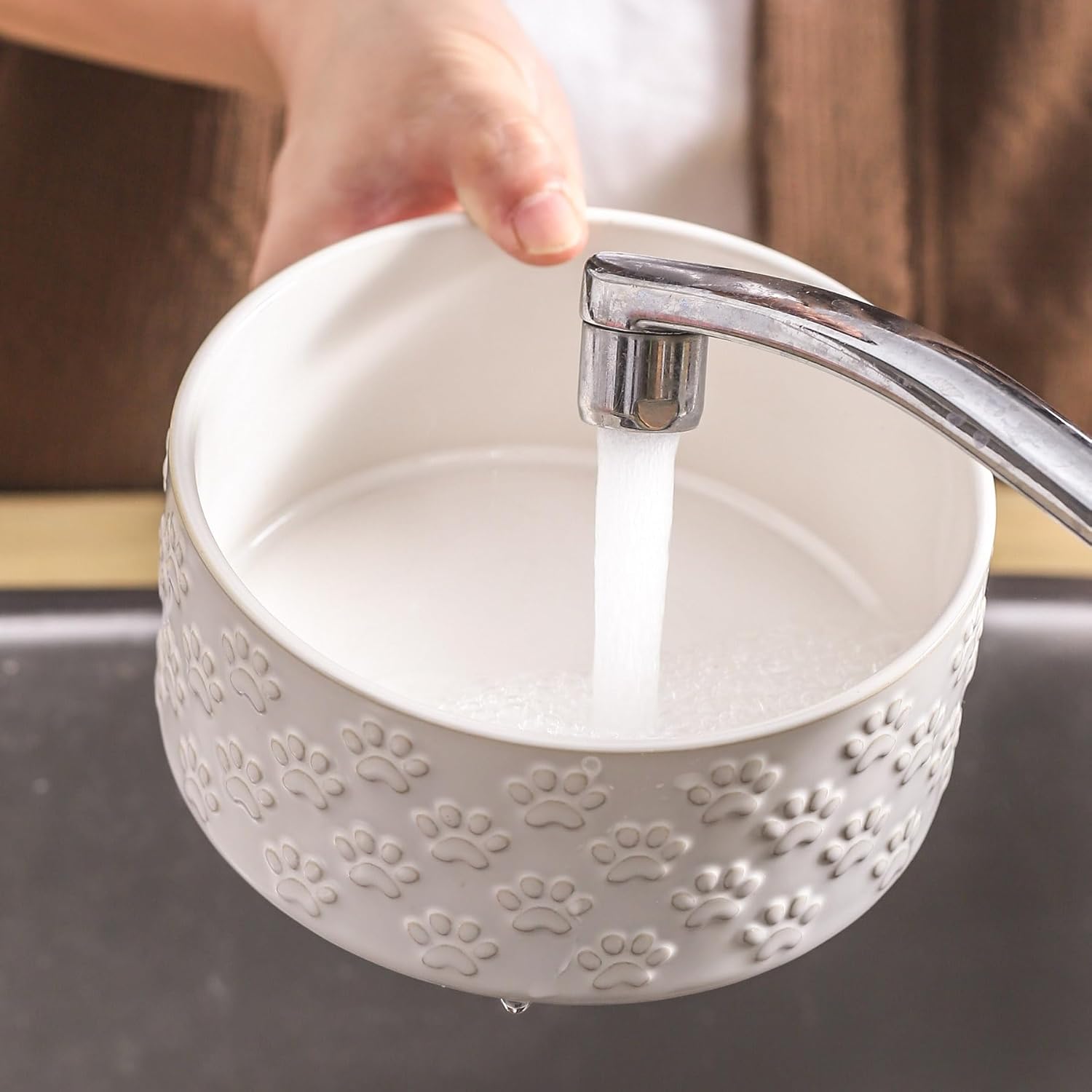 UBEE Ceramic Dog Bowl Set of 2, 5.1 inch Dog Dish Food Bowl with Paw Pattern, Pet Food Water Dish Feeding for Small Dogs and Large Cat, White