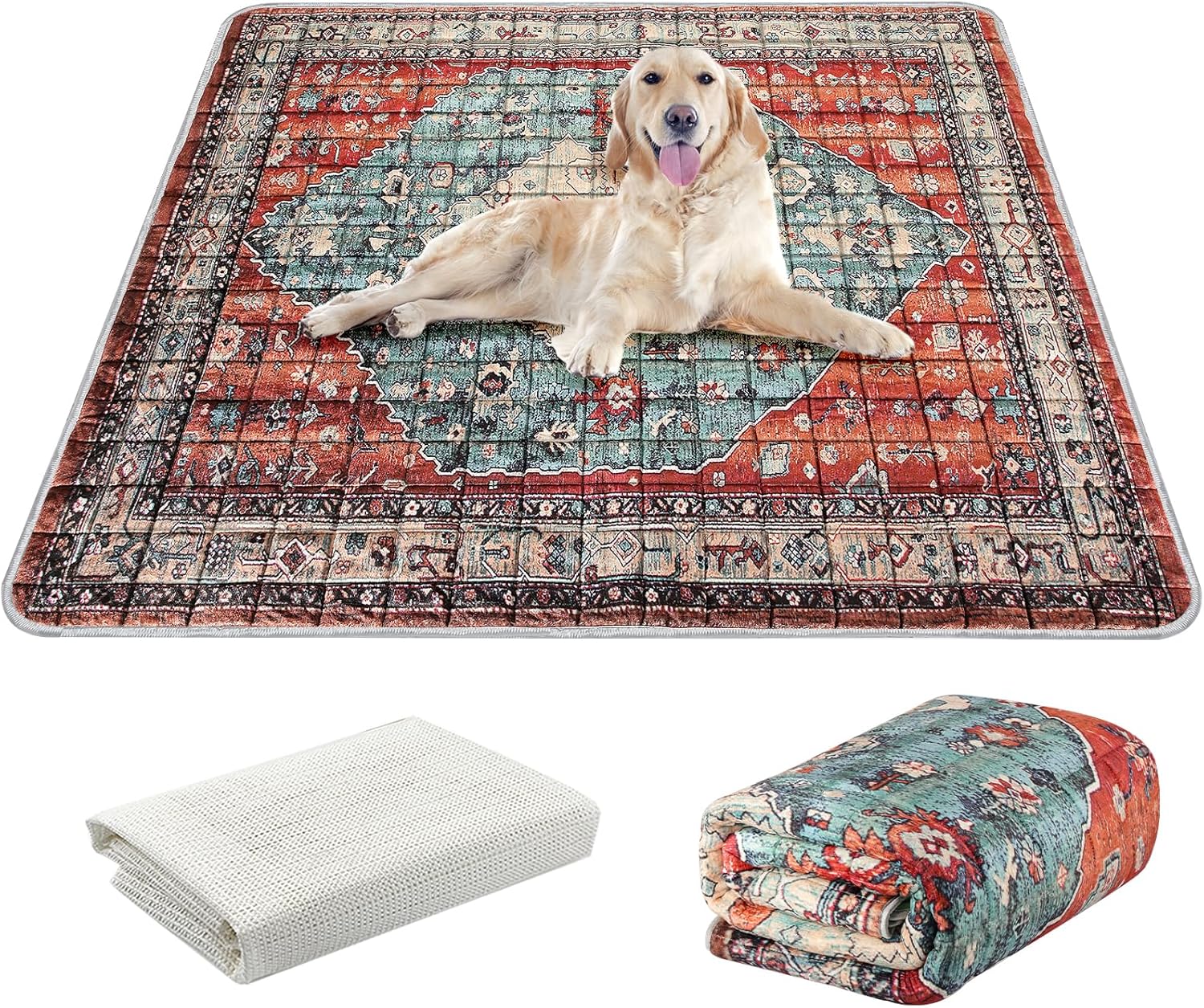 - 🐾 【Enhanced Non-Slip Performance】To prevent shifting and ensure stability, this large pad includes a non-slip PVC rug and 4 adhesive corner pads that secure the edges of the pad firmly in place, even during active use. The additional non-slip features guarantee a safe and mess-free environment for your dog.