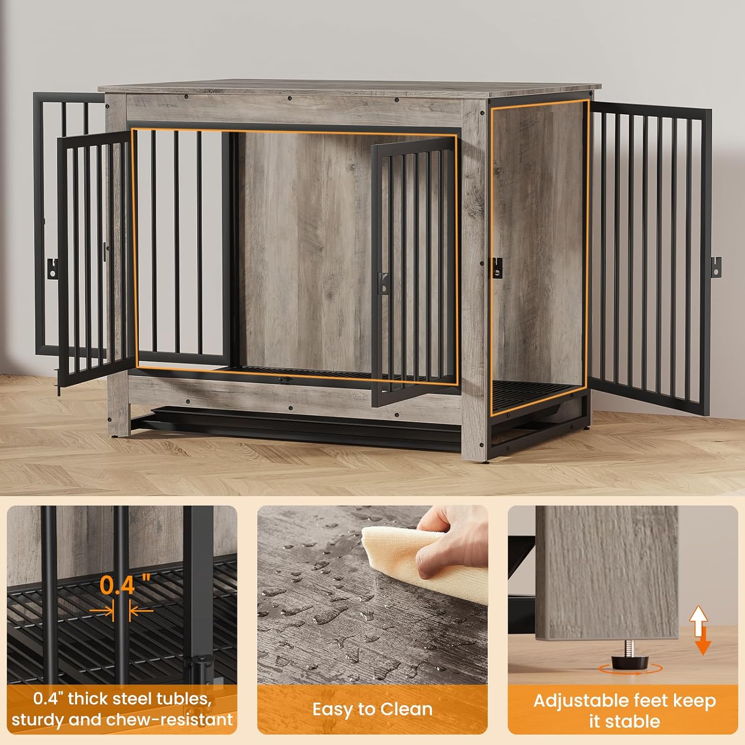 - 🐶【Sturdy and Chew-Resistant】Made with durable particleboard and 0.4” thick steel tubes, this piece of dog furniture is sturdier and more chew--resistance for pet-safe durability and long service life