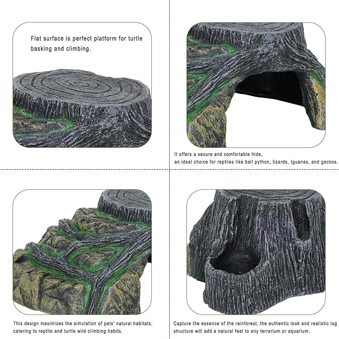 - SUIT FOR AQUARIUM DECOR AND TERRARIUM DECOR: Designed hideout for aquatic and terrestrial environments, or fish hideout for aquarium. perfect for snake enclosure accessories and lizard tank accessories offer versatility. Ideal for tortoise habitat accessories and snake hide, or snake climbing accessories or aquatic turtle tank accessories basking rock ensuring a complete and natural environment for your pets.