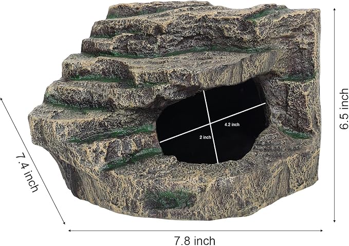 - MIMIC NATURE LOOKING: Our large reptile hide, such as the snake hide and lizard hides, also humid hide for leopard gecko, are designed to mimic natural habitats. Essential for crested gecko tank accessories and leopard gecko tank accessories ensuring a healthy and engaging environment. Perfect for snake enclosure accessories and ball python tank accessories,bearded dragon basking platform.