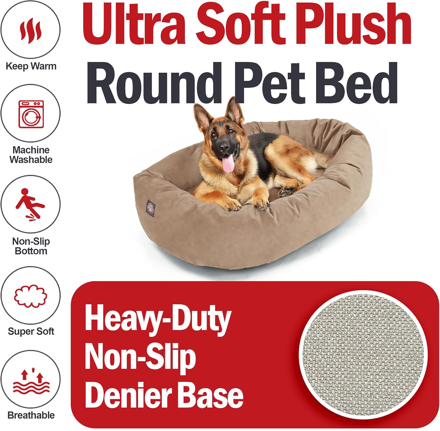 Majestic Pet 52 Inch Suede Shredded Memory Foam Mix Calming Extra Large Dog Bed Washable 52 x 35 x 11 (Inch) - Cozy Soft Donut Round Dog Bed with Spine for Head Support - Pet Bed Stone