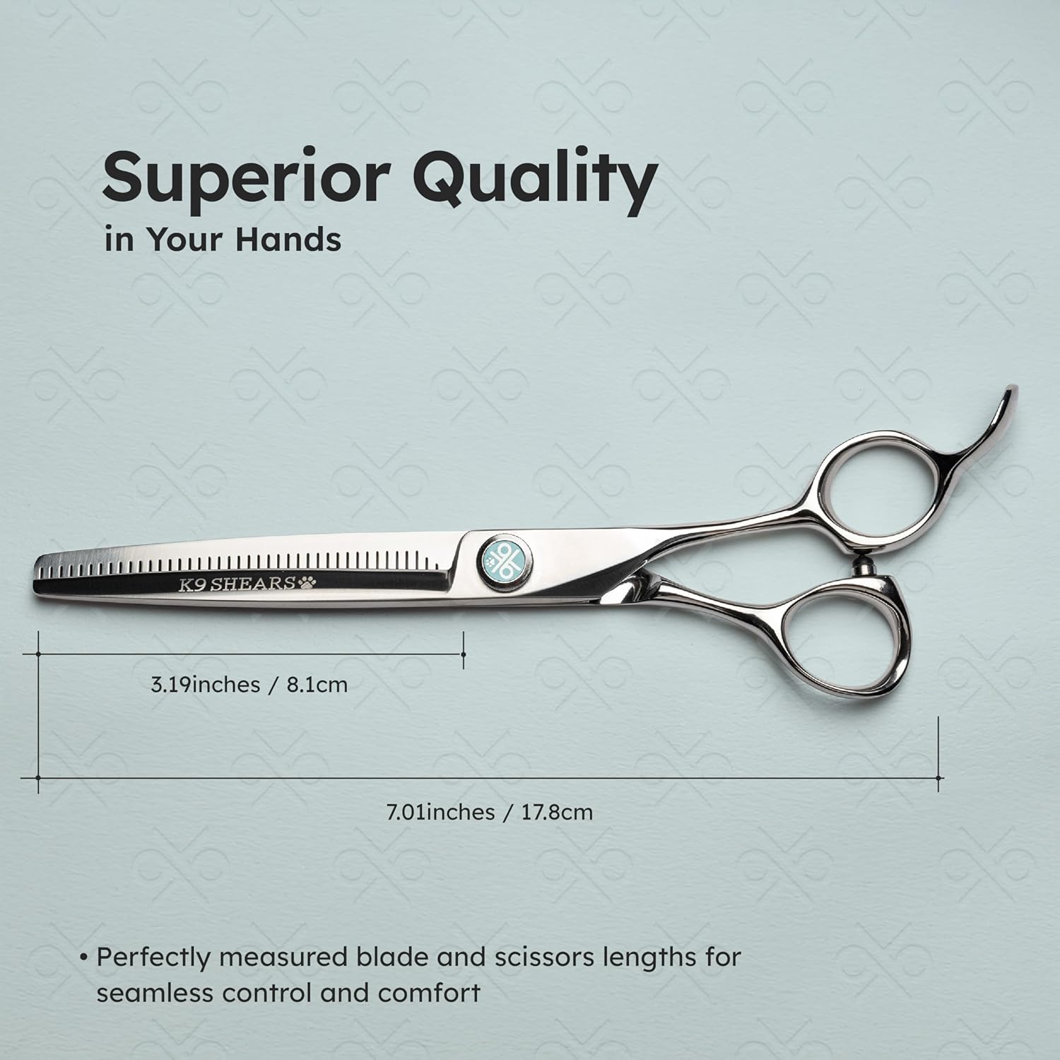 8” Dog Grooming Scissors – VG10 Japanese Steel Professional Pet Thinning Shears for Cats & Dogs | Clean Cut & Precise Trimming | Lightweight, Ergonomic, Handcrafted | Thinning Rate 50% | K9 Shears
