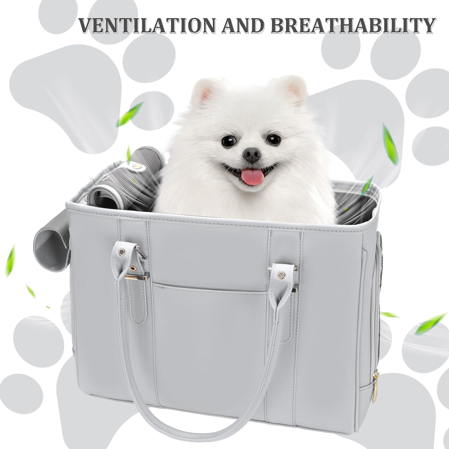 Fashion Pet Carrier Dog Purse Cat Bag Soft-Sided Carriers Travel Airline Approved, Stylish Leather Tote Handbag for Small Animal Puppy Kitten (Grey)