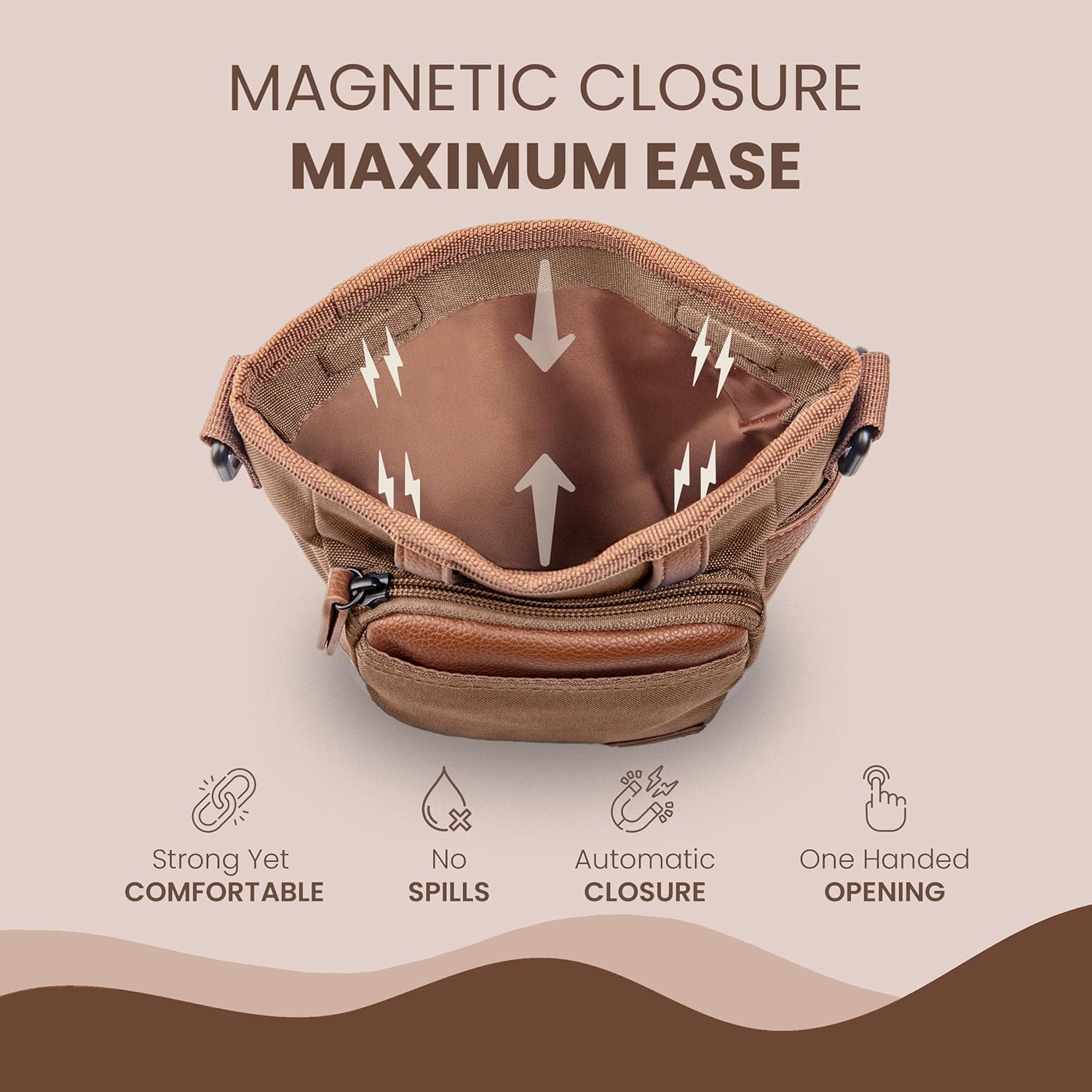 • 【EFFORTLESS ONE-HANDED ACCESS】 - The magnetic closure of this puppy treat pouch ensures fast access to treats, allowing you to reward your dog effortlessly during training sessions or walks without breaking the flow.