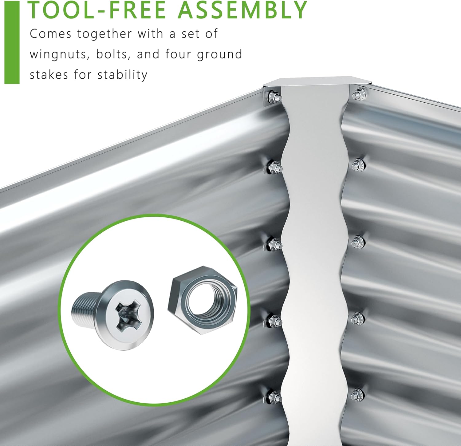 EKX 8x4x2FT Galvanized Raised Garden Bed, Raised Garden Bed Kit-Metal Planter Box Outdoor,Planting for Vegetables, Fruits,Herbs, Flowers-Slive