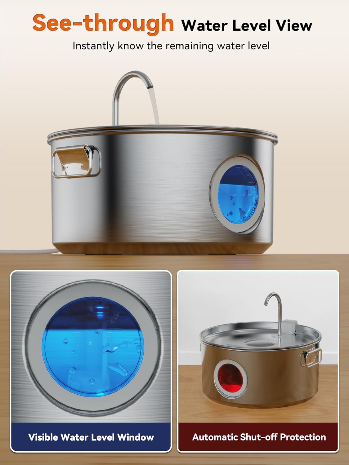 - Easy to Monitor and Maintenance: The pet water fountain features a transparent window for easy monitoring of water levels. It features dry burn protection that automatically stops the flow of water to prevent the pump from drying out. It’s also easy to disassemble and clean, with dishwasher-safe components, making maintenance a breeze.