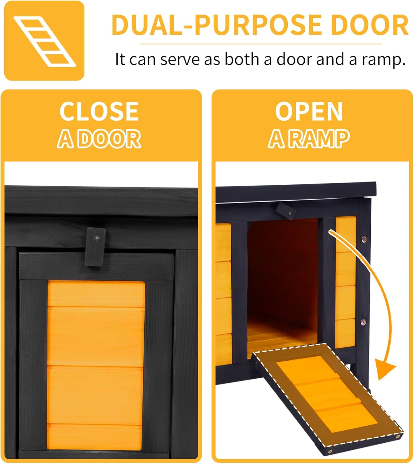 - 【Easy-Clean Rabbit Cage with Ramp Access】The outdoor cat house features convertible ramp door for elderly/small pets. Full-top opening and 19.5"D×16.5"W×16.9"H interior enables hassle-free cleaning. Wipeable surfaces simplify maintenance for rabbit cage indoor/outdoor use.