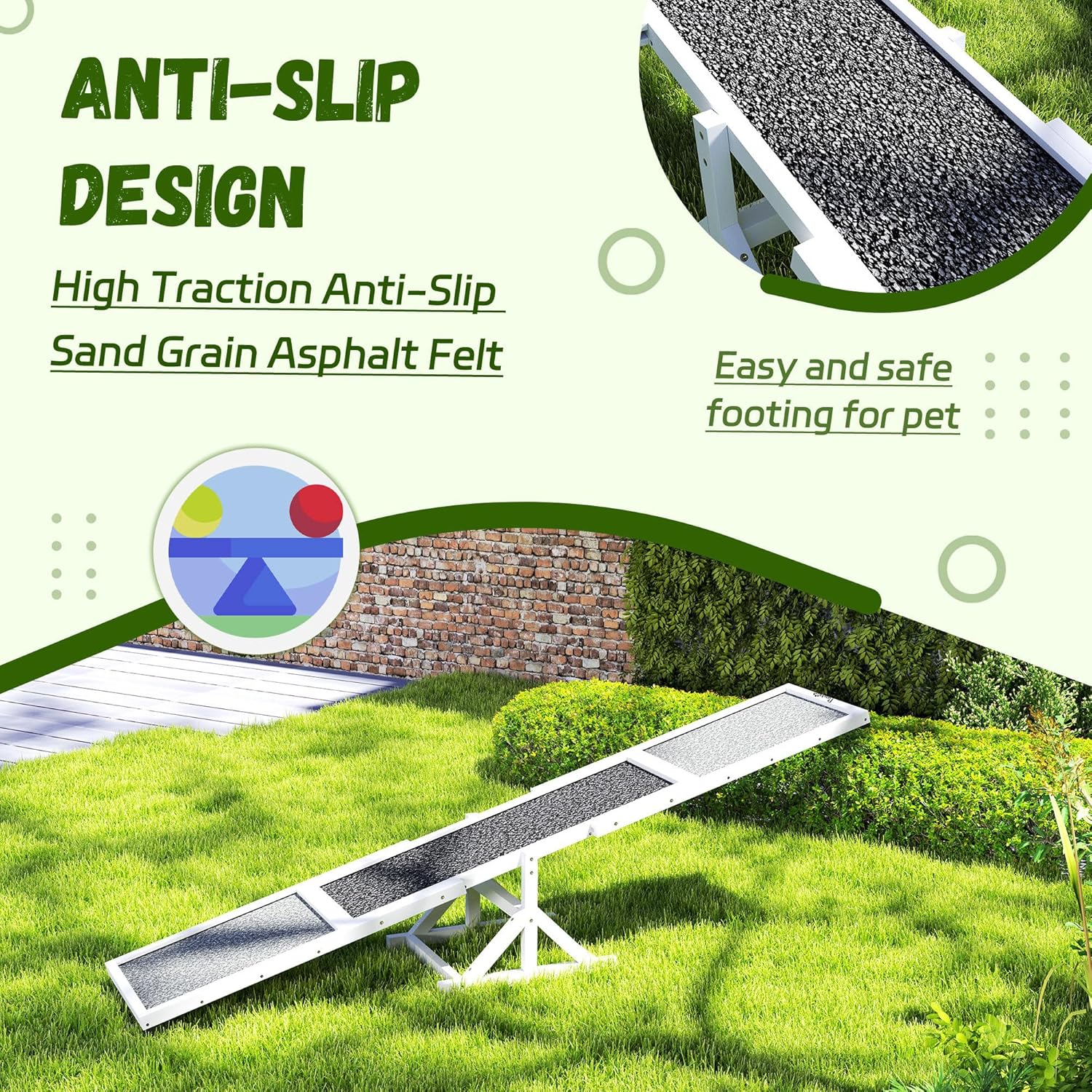 PawHut Wooden Dog Agility Seesaw for Training and Exercise, Platform Equipment Run Game Toy, Weather Resistant Pet Supplies, 83" L x 16" W x 14" H, White
