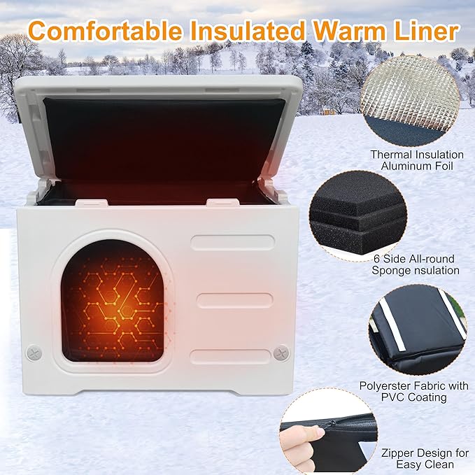 - 100% Insulated: Rockever cat house is equipped with 6 sides all-round insulated liner to lock the comfortable temperature. Provide a warm sleeping environment for pets that can withstand the cold even in the cold weather